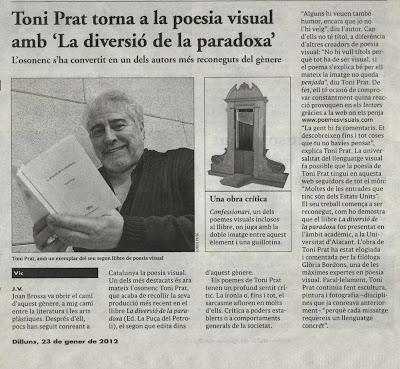 POESIA VISUAL d’en Toni Prat: Des de la comissió de Biblioteca volem agrair a en Toni Prat el donatiu que ha fet per la nostra escola de la seva última publicació : Poesia visual per a infants. Es tracta d'un projecte que busca...